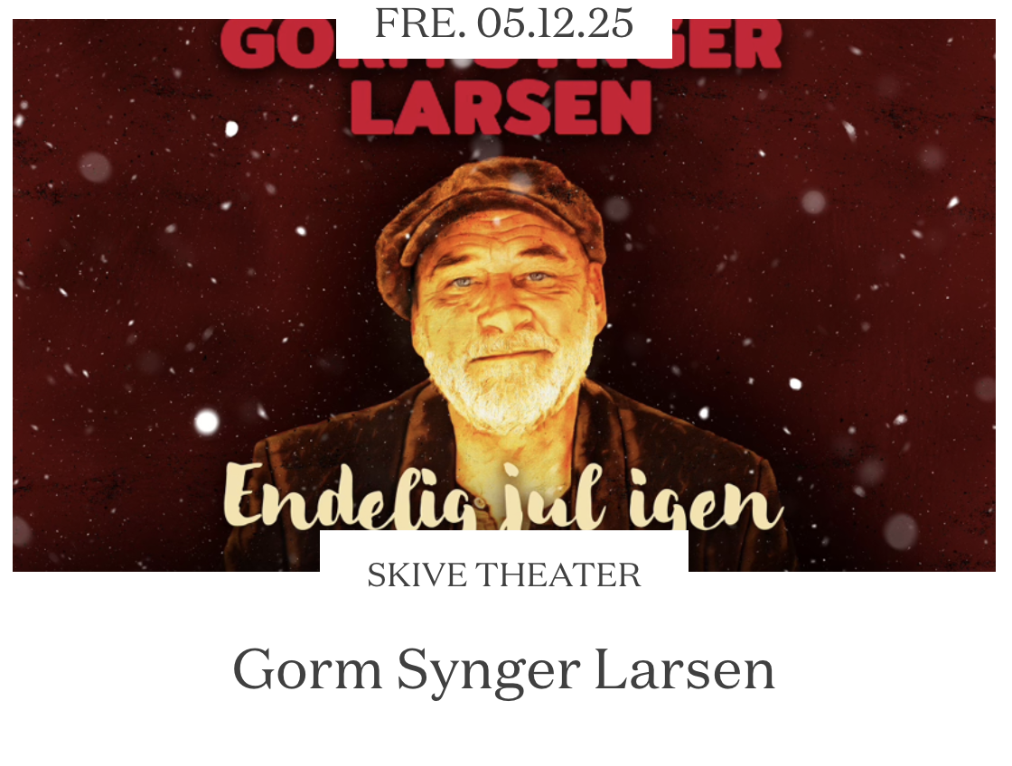 Med over 400 Larsen-koncerter bag sig, formår Gorm at indfange essensen og stemningen, når han fortolker Larsens musik. Som en publikummer sagde, “Jeg har det i kroppen som jeg har været til en Kim Larsen koncert”. Denne specielle aften vil inkludere udvalgte julehits fra “Glemmebogen” og dejlige salmer som vil vække minder og sprede julestemning. Men også sange fra f.eks “Værsgo” og “Midt om natten” kan dukke op. Ja, alt kan ske. Måske finder Gorm en af de glemte og oversete Larsen-sange frem. For er man Larsenit, så er man nysgerrig!