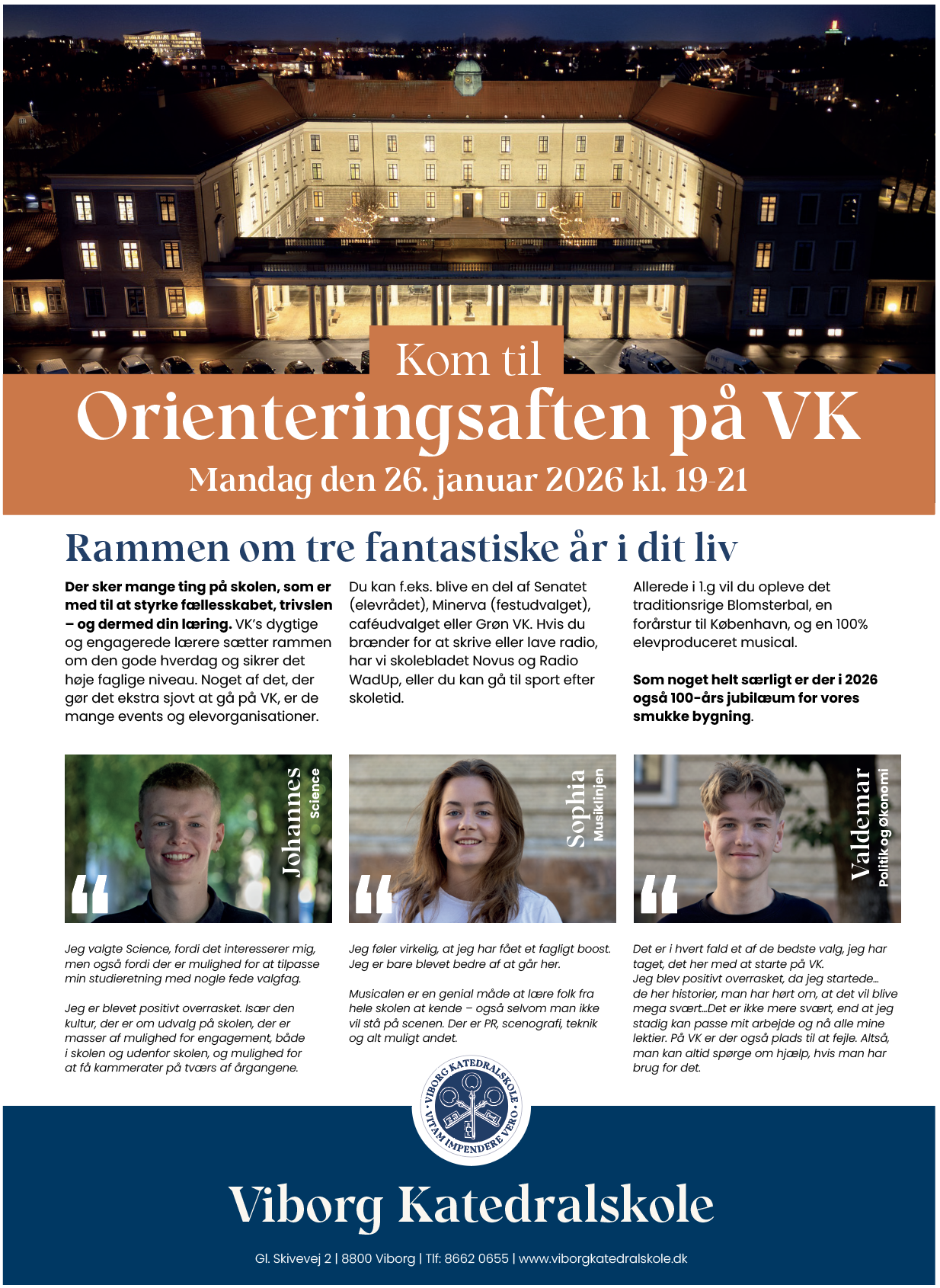 Dato 26 jan 2026 Expired! Tid 19:00 - 21:00 Orienteringsaften på Viborg Katedralskole + Add to Google Calendar + iCal / Outlook export