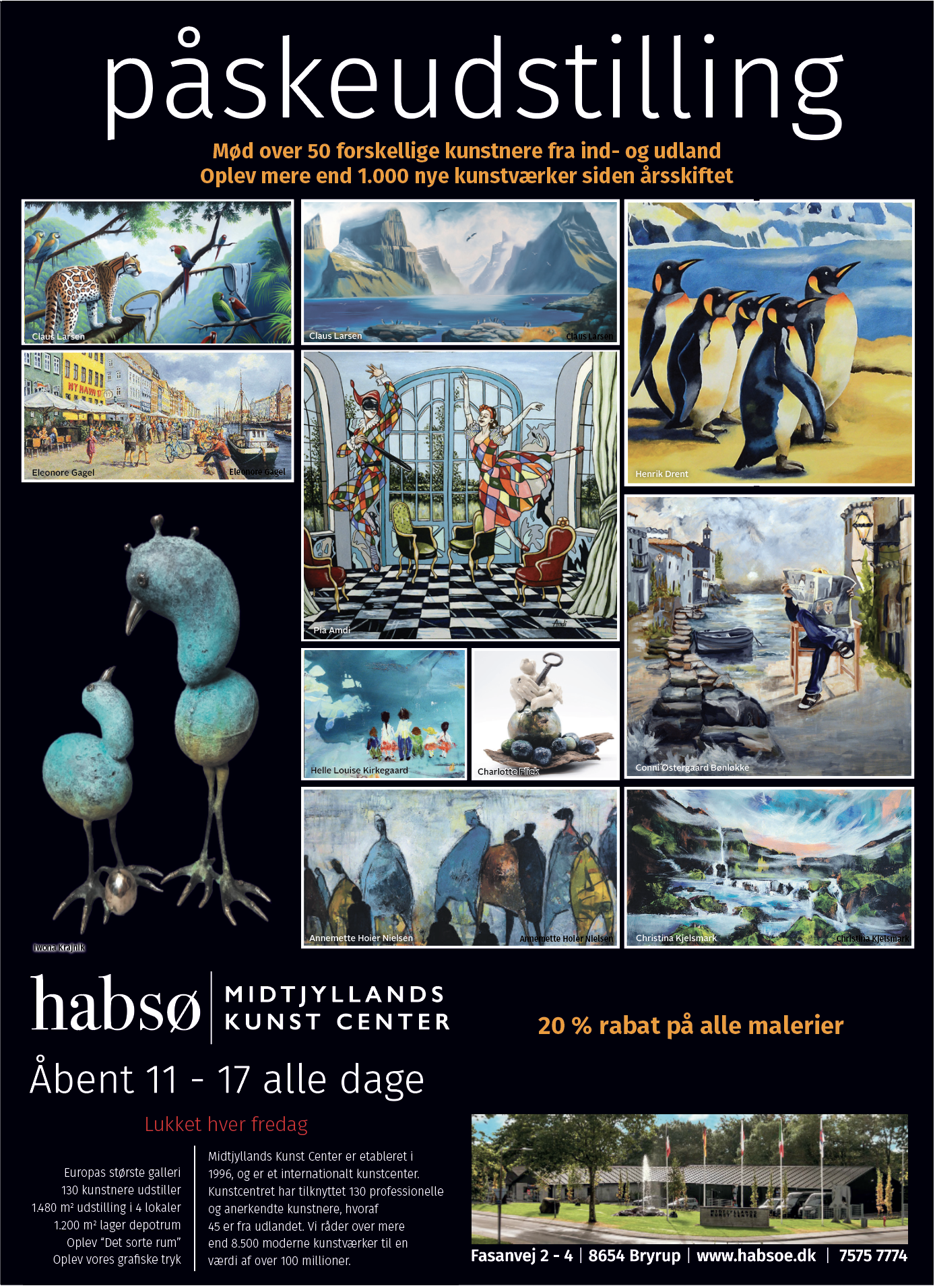 Dato 12 - 30 apr 2025 Expired! Tid 11:00 - 17:00 Påskeudstilling hos Midtjyllands Kunst Center – lukket hver fredag. + Add to Google Calendar + iCal / Outlook export