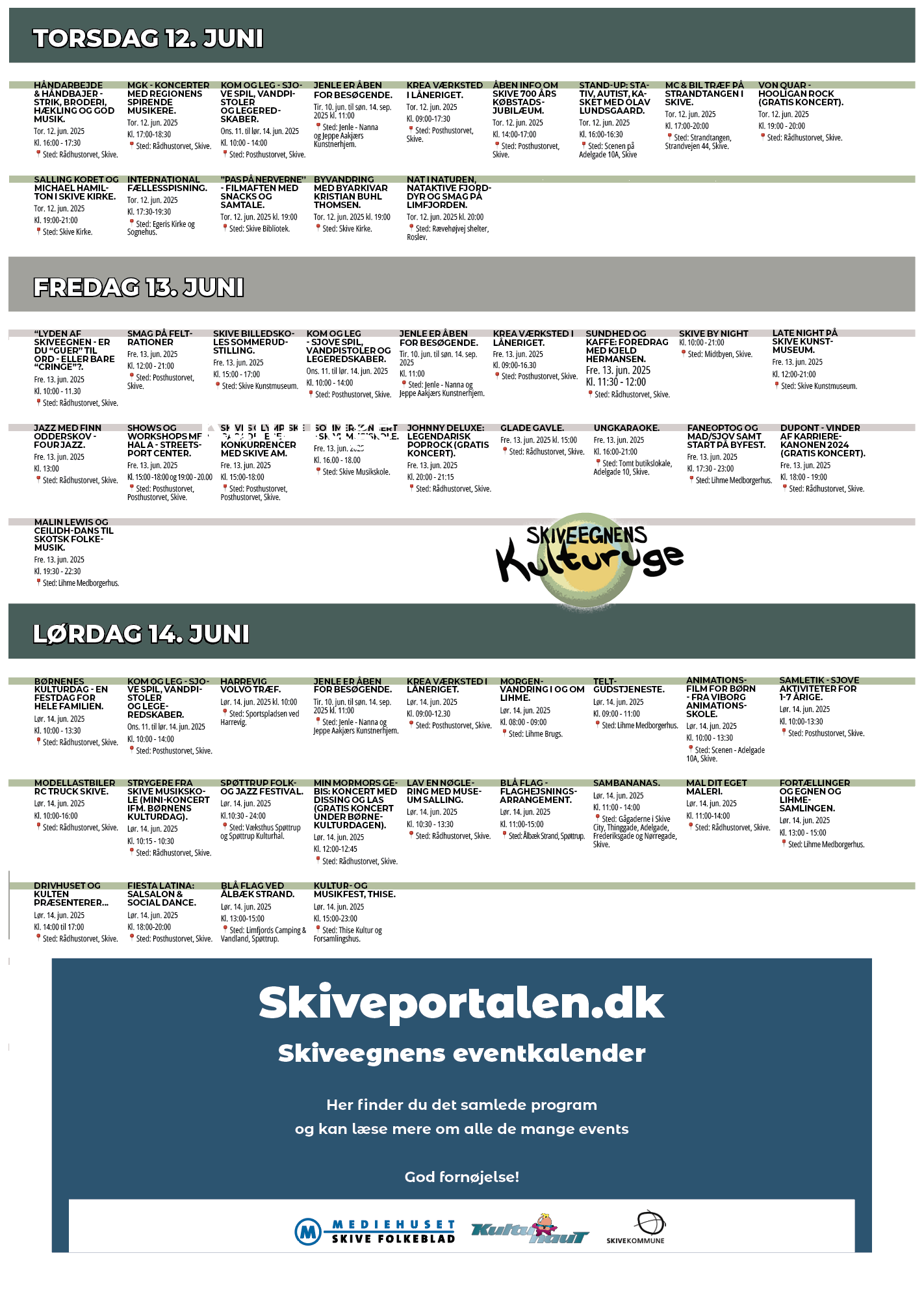 Dato 12 - 14 jun 2025 Expired! Tid 00:00 Skiveegnens Kulturuge + Add to Google Calendar + iCal / Outlook export